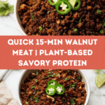 This 15-Minute Walnut Meat is a quick and flavorful plant-based alternative to ground meat. Combining walnuts and mushrooms with savory spices, it offers a satisfying texture and rich taste perfect for tacos, burritos, or bowls.