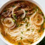 Bún Bò Huế is a flavorful and spicy Vietnamese beef noodle soup that’s rich in aromatic herbs and spices. This authentic recipe combines tender brisket and beef tenderloin with a fragrant lemongrass broth, perfect for a comforting meal any time of the year.