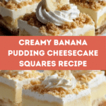 Banana Pudding Cheesecake Squares combine the creamy richness of cheesecake with the nostalgic flavors of banana pudding. This no-fuss dessert is perfect for gatherings or a special treat at home, featuring a crunchy vanilla wafer crust and a luscious banana pudding topping.