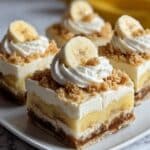 Delight in these creamy Banana Pudding Cheesecake Squares, featuring a buttery vanilla wafer crust topped with luscious banana-infused cheesecake and a smooth banana pudding layer. Finished with fluffy whipped topping, these squares offer a perfect balance of rich cheesecake and fruity banana flavors in every bite.