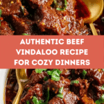 This Beef Vindaloo recipe offers a rich and flavorful Indian curry featuring tender chunks of beef simmered in a tangy, spiced sauce made with garam masala, cumin, turmeric, and apple cider vinegar. Perfectly balanced with a touch of heat and aromatic spices, the dish is a hearty meal served best with rice, naan, and yogurt to cool the palate.