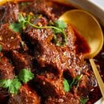 This Beef Vindaloo recipe offers a rich and flavorful Indian curry featuring tender chunks of beef simmered in a tangy, spiced sauce made with garam masala, cumin, turmeric, and apple cider vinegar. Perfectly balanced with a touch of heat and aromatic spices, the dish is a hearty meal served best with rice, naan, and yogurt to cool the palate.