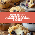 Delicious Blueberry Cheesecake Crumble Muffins featuring a moist blueberry batter, creamy cheesecake filling, and a crunchy oat crumble topping. Perfect for breakfast, brunch, or a sweet snack, these muffins combine tangy cream cheese with juicy blueberries for a delightful treat.