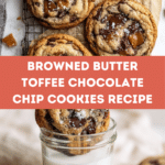 These Browned Butter Toffee Chocolate Chip Cookies combine rich, nutty browned butter with sweet toffee bits and luscious chocolate chunks for a truly decadent treat. Perfectly soft and chewy, with a hint of sea salt on top, they’re a homemade cookie classic elevated to something special.