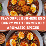 Burmese Egg Curry is a flavorful and comforting dish featuring boiled eggs simmered in a rich, spiced tomato sauce. This unique curry combines aromatic spices and textures that create a satisfying meal perfect for any time of day.