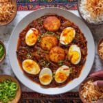 Burmese Egg Curry is a flavorful and aromatic dish featuring boiled eggs fried to a golden crisp and simmered in a rich, spiced tomato curry sauce. Enhanced with turmeric, garlic, dried shrimp, and curry powder, this traditional Burmese recipe offers a delightful balance of spices and textures, perfect for a comforting meal served with steamed rice.