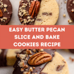 Butter Pecan Slice and Bake Cookies combine the rich, buttery flavor of pecans with a hint of cinnamon and a smooth chocolate coating. These cookies are easy to prepare ahead and perfect for sharing with friends or enjoying alongside your favorite cup of coffee or tea.