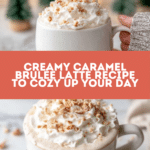 A decadent Caramel Brulée Latte combines rich espresso with frothy caramel-infused milk, topped with whipped cream and crunchy toffee bits for a delightful coffeehouse treat made easily at home.