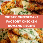 This Easy and Irresistible Cheesecake Factory Crusted Chicken Romano offers a perfect balance of crispy, cheesy, and flavorful notes. With a crunchy panko and Romano cheese crust topped by melted mozzarella, it’s a comforting dish that’s simple enough for a weeknight dinner yet impressive enough for guests.
