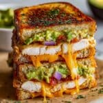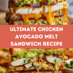 The Chicken Avocado Melt Sandwich is a delicious blend of tender chicken, creamy avocado, and melted cheese, all nestled between perfectly toasted bread. This satisfying sandwich combines fresh flavors and gooey goodness, making it a perfect meal for lunch or a quick dinner.