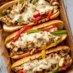 Chicken Philly Cheese Steaks are a delicious twist on the classic sandwich, featuring tender chicken, sautéed peppers and onions, and gooey melted provolone cheese. This recipe is quick to prepare and perfect for a satisfying weeknight meal.