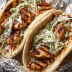 Delicious and healthy Chicken Pitas with Herby Ranch Slaw featuring marinated grilled chicken breasts paired with a fresh and tangy yogurt-based slaw, all wrapped in warm pita bread. Perfect for a quick, flavorful lunch or dinner.