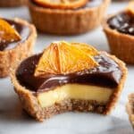 Delight in these elegant Chocolate Orange Tartlets featuring a crisp pastry shell, tangy homemade orange curd filling, and a luscious dark chocolate ganache topping. Perfectly balanced in flavors, these tartlets offer a gourmet dessert experience with a hint of citrus brightness combined with rich chocolate indulgence.