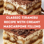 This classic Tiramisu recipe features a luscious mascarpone filling made with egg yolks, sugar, and cream, layered with coffee-soaked ladyfingers and topped with cocoa powder and dark chocolate shavings. It’s an elegant Italian dessert that’s creamy, rich, and perfect for special occasions or a delightful treat.