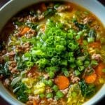 A comforting and flavorful one-pot egg roll soup featuring ground pork, fresh ginger, garlic, and crisp vegetables in a savory broth. This easy-to-make soup captures the classic flavors of an egg roll in a healthy, warming bowl perfect for any day.