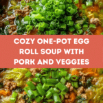 This cozy one-pot egg roll soup is packed with flavors of ginger, garlic, and fresh vegetables, making it a comforting and satisfying meal. Easy to prepare and perfect for chilly days, it captures the essence of an egg roll in a warm, slurpable form.