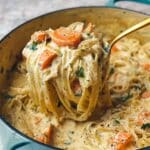 Store leftover soup in an airtight container in the refrigerator for up to 3 days. Reheat gently on the stove over low heat to prevent curdling of the cream. You can also freeze the soup, but it’s best to cook and add noodles fresh after thawing for best texture.