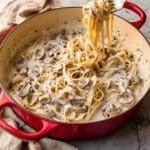 This creamy mushroom pasta features tender baby bella mushrooms in a rich, silky sauce made with butter, shallots, garlic, chicken broth, half and half, and Parmesan cheese. Tossed with al dente fettuccine and fresh parsley, it’s a comforting and elegant vegetarian meal perfect for any occasion.