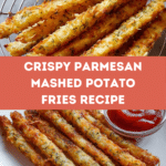Crispy mashed potato fries offer a unique twist on traditional fries by combining creamy mashed potatoes with a golden, crunchy exterior. These fries are flavored with parmesan and fresh parsley, making them an irresistible snack or side dish. They’re perfect for anyone looking to enjoy comfort food with a crispy finish.