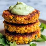 Crispy Sweet Potato & Red Lentil Patties with Creamy Avocado Cilantro Sauce Recipe