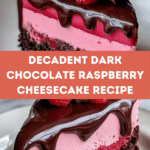 Indulge in this decadent Dark Chocolate Raspberry Cheesecake, featuring a rich chocolate cookie crust, creamy dark chocolate-infused filling, and fresh raspberries folded throughout. Perfectly baked to a smooth, slightly jiggly center and chilled to set, this luxurious dessert balances intense cocoa flavors with the tartness of raspberries for an irresistible treat.
