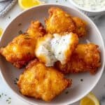Store any leftover fried halibut in an airtight container in the refrigerator for up to 2 days. Reheat in a hot oven or air fryer at 375°F for 5-7 minutes to crisp up the batter again. Keep tartar sauce refrigerated for up to 3 days and stir before serving.