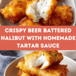 Keywords: beer battered halibut, fried fish recipe, homemade tartar sauce, crispy halibut, seafood fry