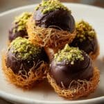 Keywords: Dubai chocolate balls, kataifi dessert, pistachio chocolate balls, Middle Eastern sweets, chocolate treat, no-bake filling dessert