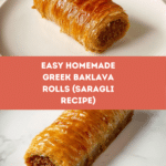 These homemade Baklava Rolls, also known as Greek Saragli, offer a delightful twist on the classic dessert. Crispy phyllo pastry layered with a fragrant nut mixture and soaked in a rich honey-spiced syrup, they’re perfect for impressing guests or treating yourself.