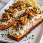 This elegant crab shrimp stuffed salmon is a delicious way to impress your guests with minimal effort. Tender salmon fillets are filled with a savory seafood mixture, seared to perfection, and baked to create a flavorful, restaurant-quality dish at home.