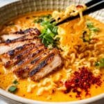 Keywords: Fiery Chicken Ramen, Spicy Chicken Ramen, Creamy Garlic Sauce, Comfort Food, Asian Noodle Bowl