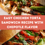 This Flavor-Packed Chicken Torta Sandwich features tender, marinated chicken cooked to juicy perfection and layered with creamy avocado, refried beans, fresh vegetables, and tangy pickled jalapeños on toasted telera or bolillo rolls. A perfect blend of smoky chipotle and fresh toppings makes it a delicious and satisfying Mexican-inspired sandwich.