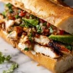 This Flavor-Packed Chicken Torta Sandwich features tender, marinated chicken cooked to juicy perfection and layered with creamy avocado, refried beans, fresh vegetables, and tangy pickled jalapeños on toasted telera or bolillo rolls. A perfect blend of smoky chipotle and fresh toppings makes it a delicious and satisfying Mexican-inspired sandwich.