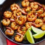 - Finish and serve: Remove the skillet from heat, taste the shrimp, and adjust the seasoning if needed. Sprinkle with chopped parsley for a fresh finish and serve immediately while hot.