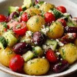Keywords: Greek potato salad, feta cheese salad, Mediterranean salad, baby potatoes, Kalamata olives, healthy potato salad