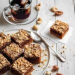 Karydopita, a traditional Greek walnut cake, is a moist and flavorful dessert featuring finely and coarsely ground walnuts combined with warm spices like cinnamon and cloves. This cake is beautifully complemented by a sweet lemon-cinnamon syrup infused with cognac, creating a luscious, aromatic finish that’s perfect for gatherings or special occasions.