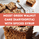 Greek Walnut Cake, or Karydopita, is a moist and fragrant dessert bursting with warm spices and citrus zest. This traditional treat drenched in a sweet syrup offers a perfect balance of rich walnut flavor and delicate sweetness, ideal for any occasion.