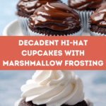 Hi-Hat Cupcakes are a delightful treat featuring rich chocolate cupcakes topped with fluffy marshmallow frosting and a crisp dark chocolate shell. This elegant dessert combines textures and flavors that will impress at any gathering.