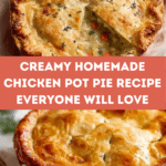Chicken pot pie is a classic comfort food that brings warmth and satisfaction to any meal. This irresistibly creamy and savory version features tender shredded chicken, hearty vegetables, and a flaky homemade crust. It’s perfect for cozy dinners and sure to please the whole family.