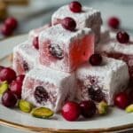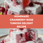 Keywords: Turkish delight, Cranberry rose Turkish delight, Rose water dessert, Middle Eastern sweets, Homemade Turkish delight, Cranberry candy, Pistachio Turkish delight, Easy Turkish delight recipe