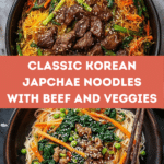Keywords: Japchae, Korean noodles, sweet potato noodles, beef stir-fry, Korean recipe, glass noodles, vegetable stir-fry, sesame oil noodles