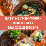This Melt in Your Mouth Beef Braciole recipe features tender flank steak rolled with a flavorful mixture of spinach, Parmesan, sun-dried tomatoes, and herbs, seared to perfection and baked in a rich marinara sauce until juicy and succulent. Perfect as a comforting Italian-inspired main dish.