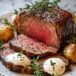 This Million Dollar Roast Beef Tenderloin recipe delivers a tender, flavorful centerpiece perfect for impressive dinners. The beef is marinated with fresh herbs, garlic, Dijon mustard, and Worcestershire sauce, then seared to lock in flavor before roasting to a perfect medium-rare.