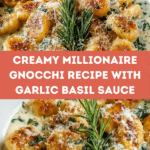 Millionaire Gnocchi with Creamy Sauce is a luxurious and comforting Italian-inspired dish featuring soft, pillowy gnocchi enveloped in a rich, creamy Parmesan sauce infused with garlic and fresh basil. Perfect for a decadent weeknight dinner or special occasion, this recipe combines simple ingredients with elegant flavor and creamy texture.