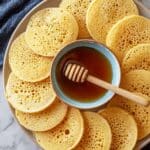Moroccan Pancakes, known as Baghrir, are delightfully spongy, full of tiny holes that soak up honey and butter beautifully. These light, one-sided pancakes make a perfect breakfast or snack with their unique texture and gentle sweetness.