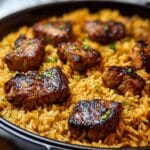 - Let it Rest: Remove from the oven and let the dish rest uncovered for 5–10 minutes to allow the rice to finish cooking and the flavors to settle.