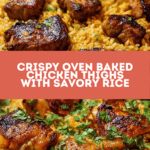 This oven-baked chicken and rice recipe combines juicy, crispy chicken thighs with flavorful, tender rice cooked in savory broth. It’s a comforting, one-pan meal that’s easy to prepare and perfect for weeknight dinners or casual gatherings.