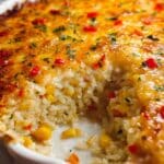 A flavorful and creamy Pepper Jack Rice Bake combining sautéed bell peppers and onions with cooked rice, sour cream, cream of celery soup, green chiles, corn, and spicy Pepper Jack cheese. This comforting casserole is baked until golden and bubbly, making it an easy and delicious side dish or vegetarian main.