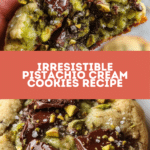 Keywords: pistachio cookies, pistachio cream, chocolate chip cookies, soft cookies, nutty cookies, holiday cookies, baked desserts