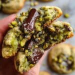 These Pistachio Cream Cookies are a delightful blend of rich pistachio cream, chocolate chunks, and crunchy pistachios baked into soft, flavorful cookies. Featuring a tender crumb and a creamy center, these cookies offer a perfect balance of nuttiness and sweetness, finished with a sprinkle of flaky salt to enhance the flavors.
